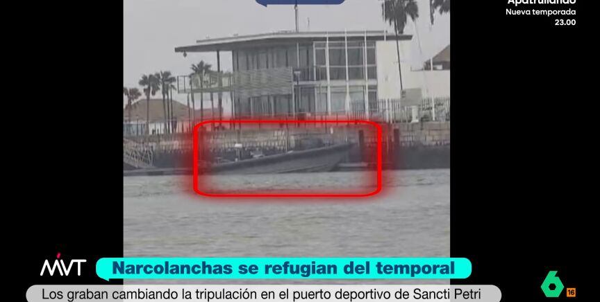En Sancti Petri, en el municipio de Chiclana de la Frontera, también se puede ver en otro vídeo cómo llega una narcolancha y aparca, ni más ni menos, que en el puerto deportivo mientas se van tranquilamente sin que pase absolutamente nada, al menos a su llegada.