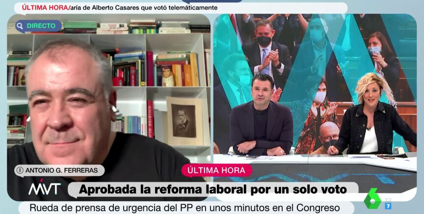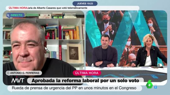 Más Vale Tarde ha seguido muy de cerca, durante la emisión del programa, la votación en la cámara y la polémica posterior. Tras la votación y todos los inesperados acontecimientos, los presentadores han contactado en directo con Antonio García Ferreras para preguntarle su opinión acerca de todo lo sucedido en el Congreso este jueves. Cristina Pardo daba paso al periodista comentando que "ha sido tremendo, peor que en el Benidorm Fest". Puedes ver el momento en el vídeo que ilustra estas líneas.