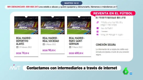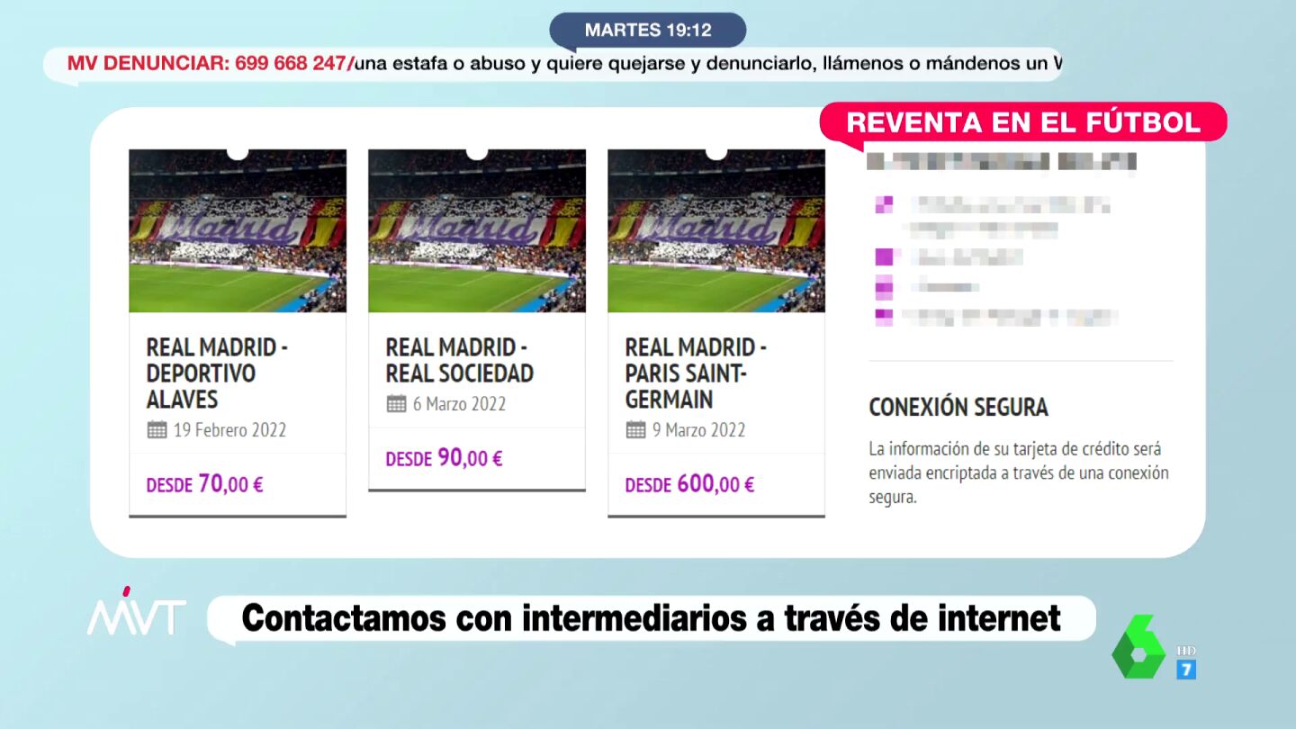 Más Vale Tarde contacta con intermediarios que revenden entradas para un partido de fútbol a través de internet a precios desorbitados para evidenciar cómo funciona este tipo de venta ilegal.