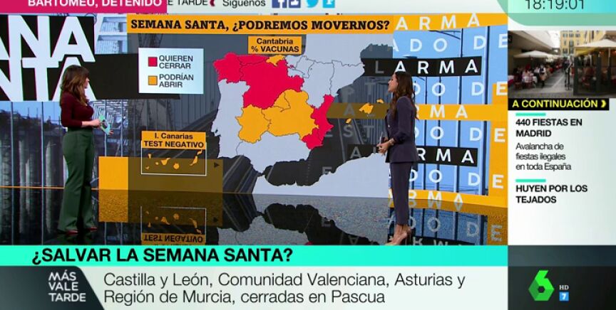 García Page insta a la posibilidad en caso de que los contagios bajen, mientras que Revilla echa la vista al ritmo de vacunación. Extremadura y la Comunidad de Madrid, sin embargo, ya están abiertas, al igual que las Islas Canarias, para las que hace falta una PCR negativa antes de entrar.