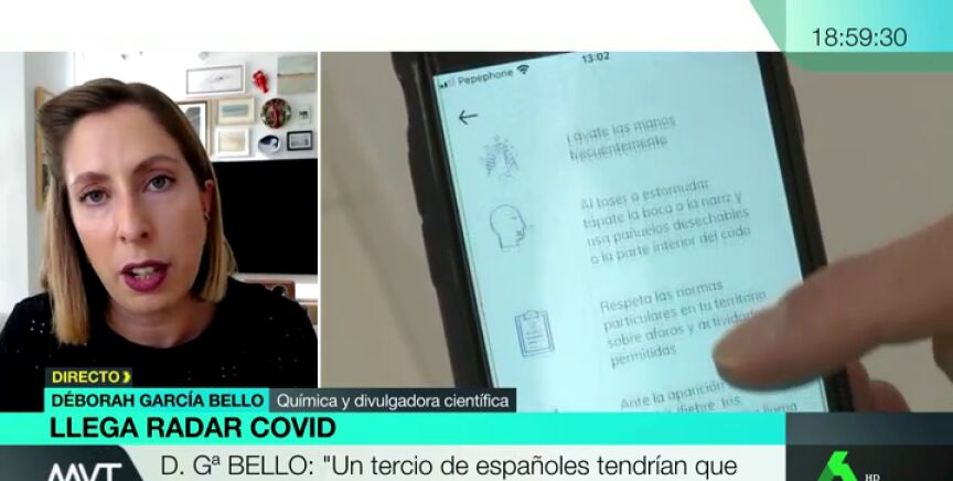 Radar COVID, la app de radar de contagios del Gobierno, es la más descargada en España, aunque aún no funciona en su totalidad. Deborah García, química y divulgadora científica, explica en Más Vale Tarde las claves y el funcionamiento de esta aplicación. "La aplicación, gracias al bluetooth activo del móvil, elabora una lista de contactos y registra todas las personas cercanas que también tienen la app instalada. Y esto ya funciona".