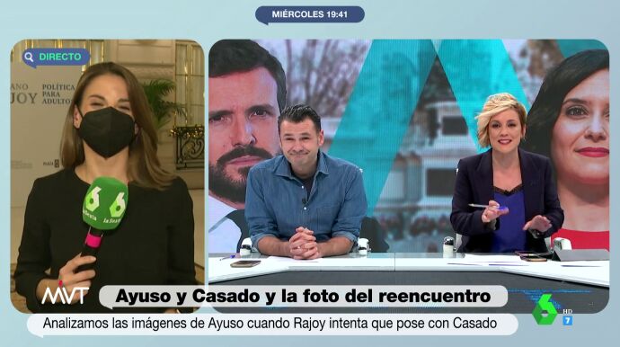 Esta reacción ha impactado mucho a los presentadores de Más Vale Tarde, que han vivido el momento mediante una conexión en directo. Instantes después, fuentes del entorno de Ayuso han explicado a laSexta que ella y Casado no se han evitado, sino que esas posiciones eran las que había puesto el protocolo de la editorial. Ante esta respuesta del entorno de Ayuso, Iñaki López ha respondido: "Podrían haberse buscado una excusa más creíble".
