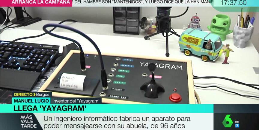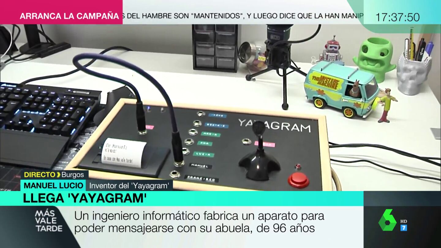 Es decir, que una vez se envíe un mensaje de vuelta, el Yayagram va a recibirlo y lo va a imprimir en un papel de tamaño similar al de una factura que la persona en cuestión podrá recoger de la máquina para leerlo. ¿Cómo se le ocurrió a Manuel esta idea? También nos lo ha contado en Más Vale Tarde: "Mi yaya no puede escuchar bien, por lo que no puede llamar por teléfono, porque tampoco se maneja con el teléfono: ni con la lista de contacto ni con las aplicaciones".