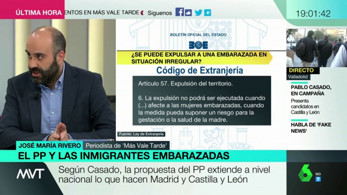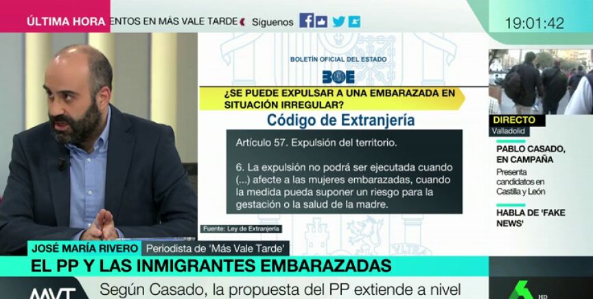 José María Rivero analiza al detalle en Más Vale Tardeel supuesto de la Ley de Extranjería que establece que ninguna mujer embarazada puede ser expulsada o devuelta a su país.