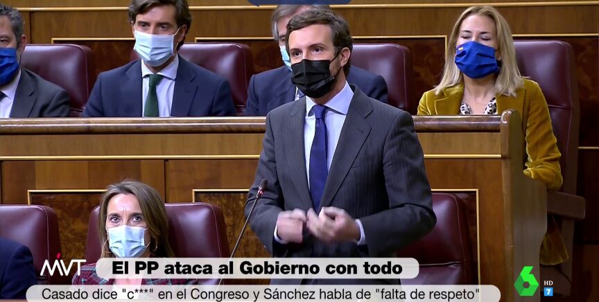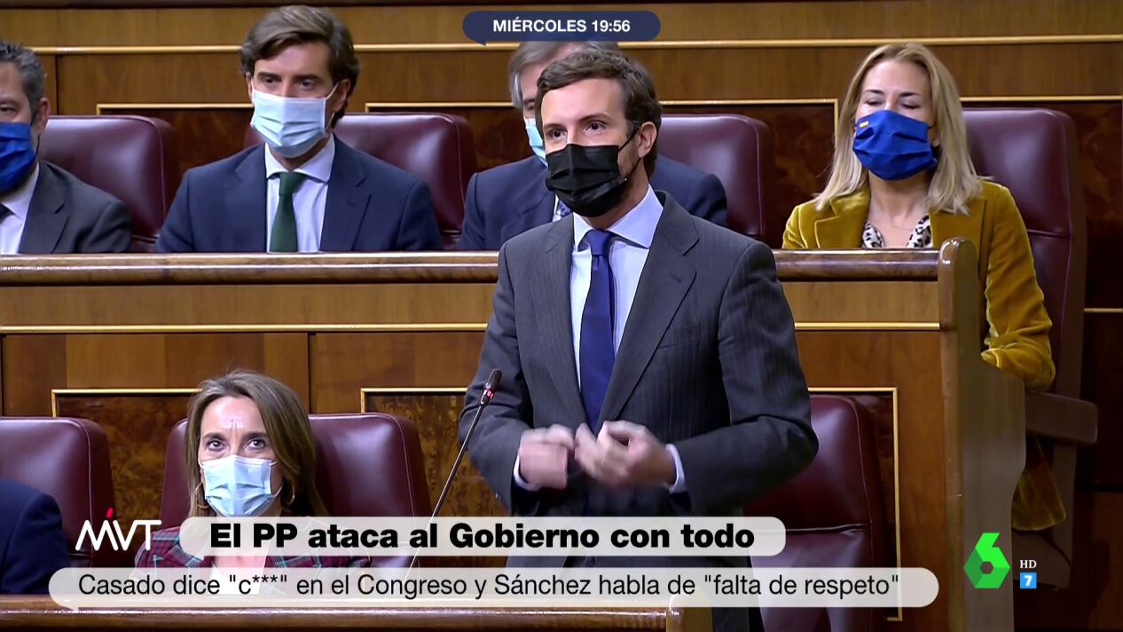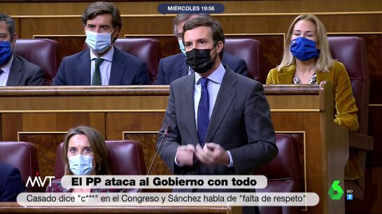 La sesión de control de este miércoles en el Congreso de los Diputados ha sido particularmente agria. En un momento dado, el líder de la oposición, Pablo Casado, ha empleado una palabra malsonante durante su interpelación a Pedro Sánchez: "¿Qué coño tiene que pasar en España para que usted asuma alguna responsabilidad?", ha espetado.