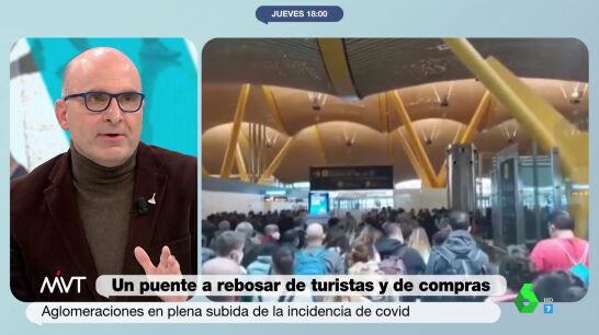 El virólogo José Antonio López ha analizado la utilidad de los formularios 'ESTA' que actualmente se requieren de forma aleatoria en los aeropuertos españoles para poder viajar a pocos días de las fiestas de Navidad. El propio virólogo ha explicado que tuvo que esperar una cola de seis horas para poder rellenar el informe.