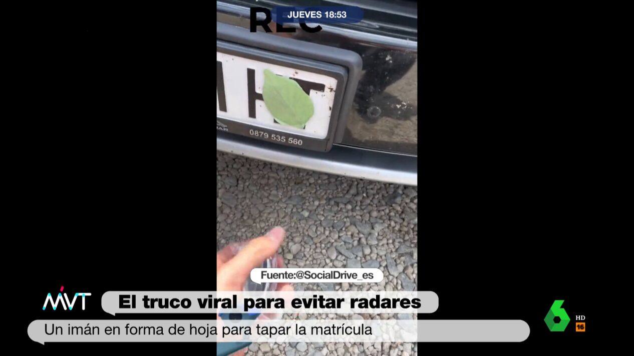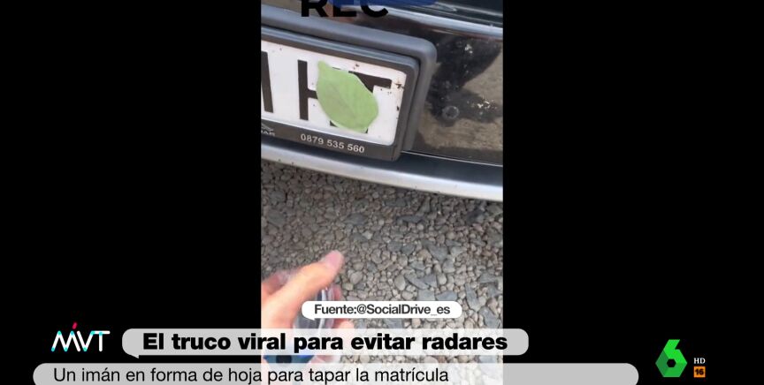 El mecanismo es sencillo: un imán en forma de hoja que se adhiere a la matrícula del coche y evita que los radares de velocidad puedan fotografiar la totalidad de la matrícula.