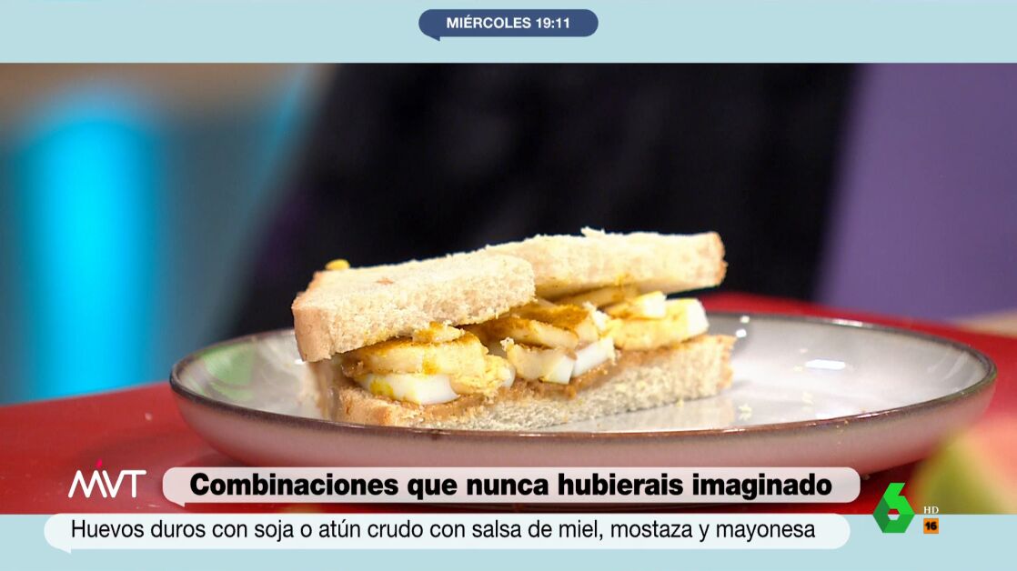 Uno de sus platos es un sándwich que lleva crema de cacahuete, plátano y curry. Este plato, de primeras, no gusta a Cristina Pardo, y 'obliga' a Iñaki López a "saltarse la dieta". Eso sí, Ojeda deja claro que la crema de cacahuete es "sumamente saludable".