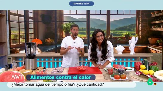El nutricionista Pablo Ojeda vuelve a Más Vale Tarde para compartir dos recetas que nos ayudarán a mantenernos hidratados a pesar de las altas temperaturas: una ensalada de sandía y un helado exprés de plátano y frutos rojos.
