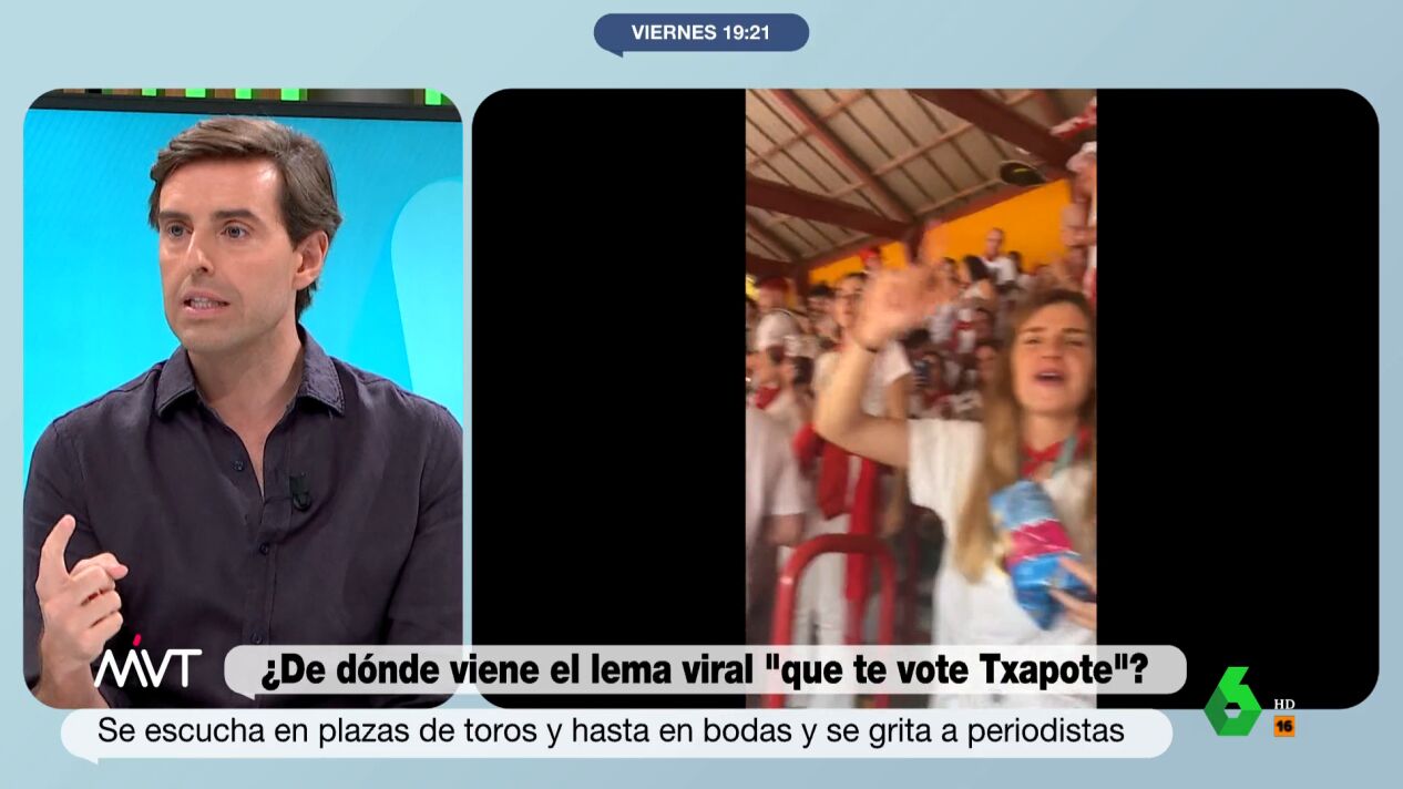 El periodista Pablo Montesinos ha cargado este viernes en Más Vale Tarde contra los dirigentes políticos que usan el eslogan 'Que te vote Txapote'. Para Montesinos, a los dirigentes "se les debe exigir un plus de responsabilidad porque al final sus opiniones tienen repercusión en la opinión pública". "Hay que respetar a la víctima del terrorismo", ha señalado.