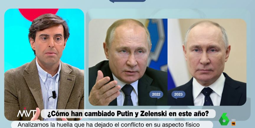 Todo tras un análisis sobre los cambios físicos de Zelenski, a quien la guerra le ha cambiado notablemente el físico. No es así con Putin, quien en un año de guerra, se le aprecian más canas, algún kilo menos y poca variación.