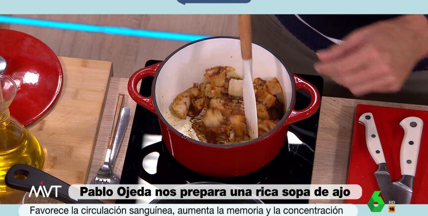 En Semana Santa hay muchísimas recetas típicas que van más allá de las torrijas. Si hablamos de platos icónicos de la gastronomía española, hay uno que destaca por encima del resto: la sopa de ajo. En Más Vale Tarde, Pablo Ojeda explica cómo podemos hacer este plato sencillo, sabroso y nutritivo de una forma fácil.
