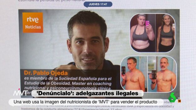 Una web ha utilizado la imagen de Pablo Ojeda sin su consentimiento para vender un producto adelgazante cuya comercialización es totalmente ilegal en España. El nutricionista de 'Más Vale Tarde' explica que se enteró de esto "cuando me empieza a escribir la gente y a decirme que qué tal las gotas, yo digo '¿qué gotas?'".