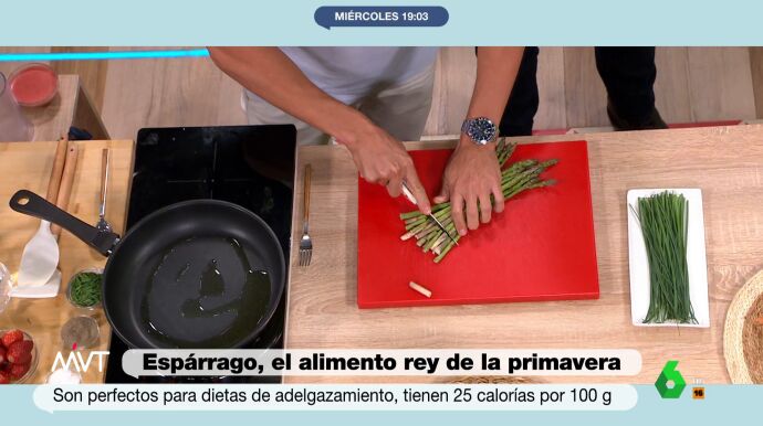Pablo Ojeda ha contado este miércoles en Más Vale Tarde algunos de los beneficios que presenta el comer espárragos, ya sean verdes o blancos, puesto que ambos cuentan prácticamente con las mismas propiedades. Al fin y al cabo, el espárrago blanco es el brote joven que todavía no ha despuntado, por lo que la clorofila no lo ha convertido todavía en verde.