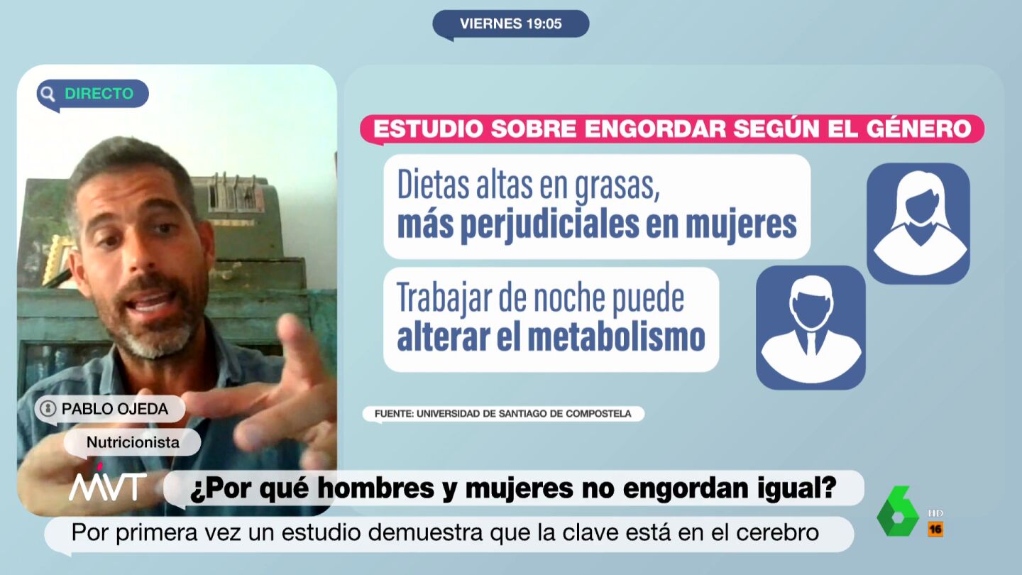 Pablo Ojeda explica por qué hombres y mujeres no engordan igual con una misma dieta alta en grasas