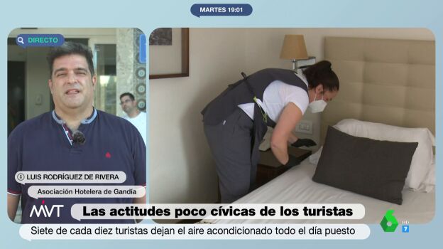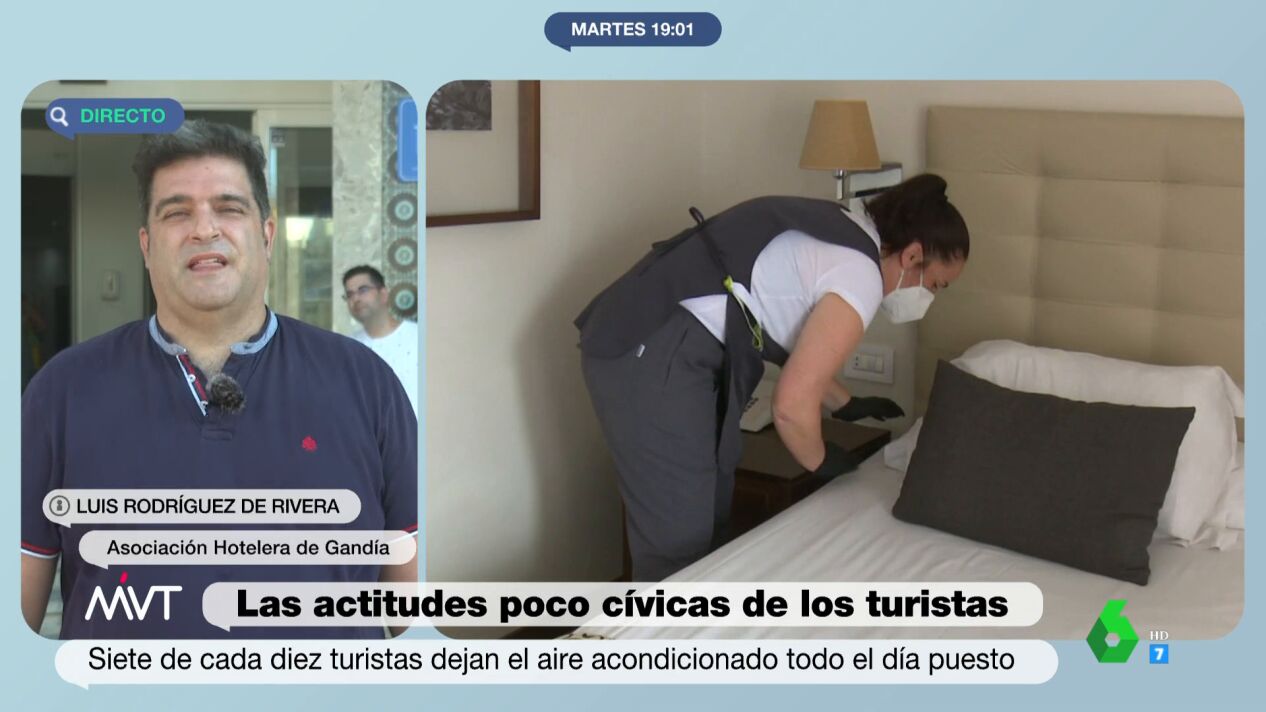 Luis Rodríguez, miembro de la Asociación Hotelera de Gandía, se ha pasado por Más Vale Tarde para explicar cuáles son los comportamientos incívicos más habituales por parte de los turistas que acuden a su hotel: desde arrasar con el bufet hasta llevarse vasos o dejar el aire acondicionado encendido durante todo el día.
