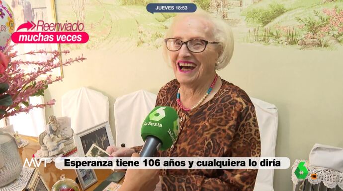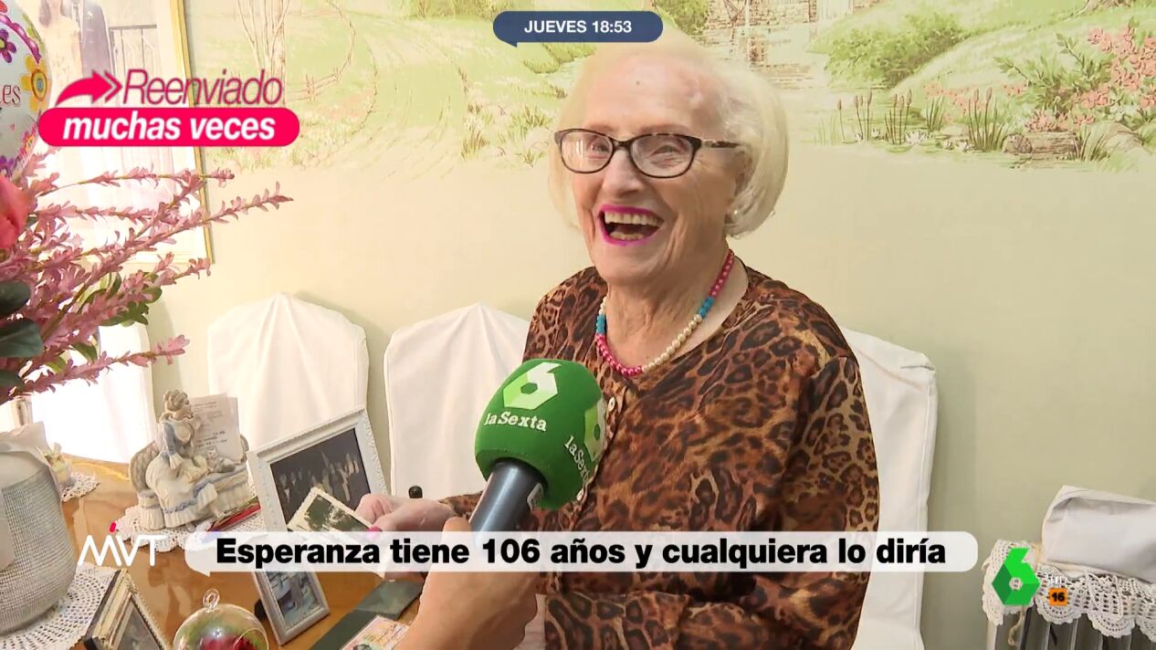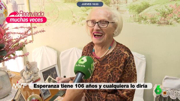 Más Vale Tarde acompaña a Esperanza, una orensana de 106 años, en su día a día desde que se maquilla, sube con agilidad al autobús y 'hace trampas' en la partida de cartas con las amigas. Además, le sobra energía para bailar una muñeira.