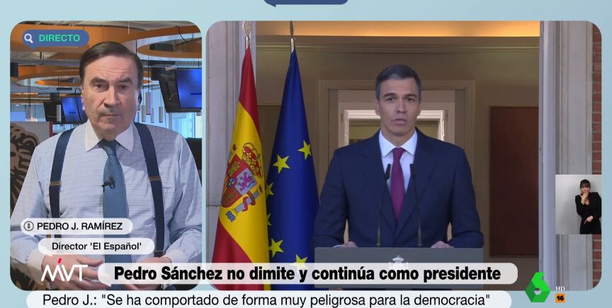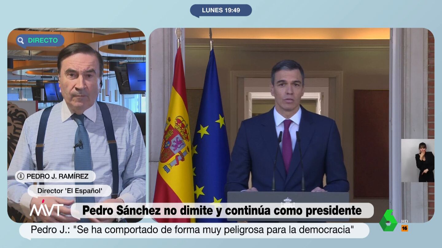 Pedro J. Ramírez se muestra muy crítico con la comparecencia de Pedro Sánchez de este lunes en la que ha anunciado su continuidad como presidente del Gobierno. El director de 'El Español' reconoce que "hasta hoy" pensaba que Pedro Sánchez "estaba siendo un mal gobernante que iba a dejar tras de sí problemas de fondo", una opinión que ha cambiado.