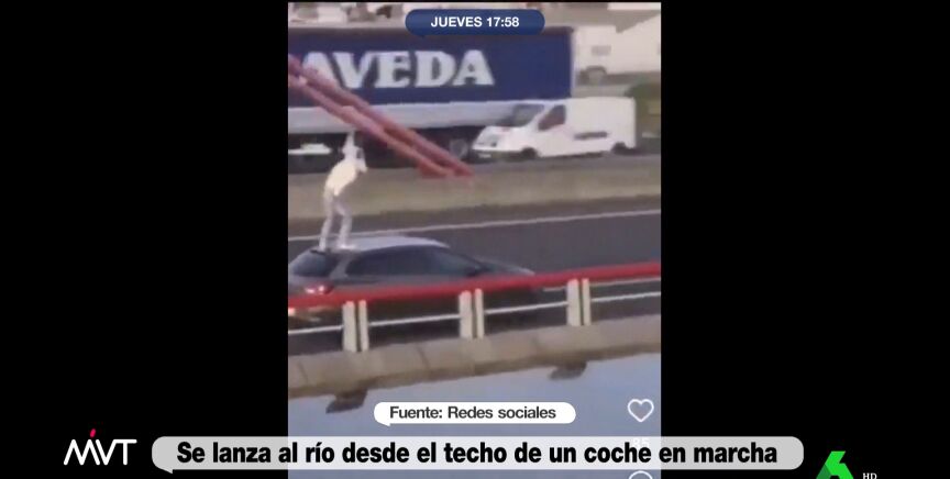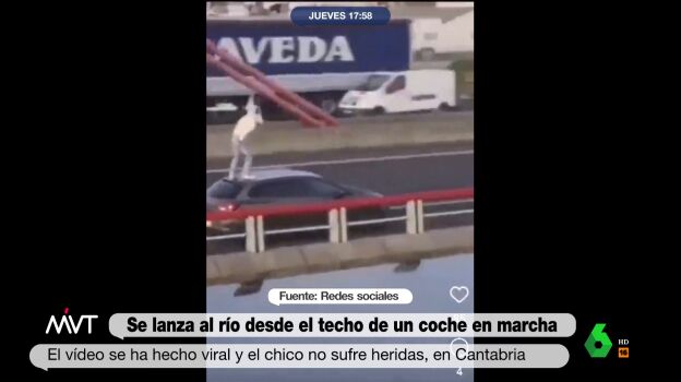 La escena, que se puede ver en el vídeo sobre estas líneas, se adheriría a un 'pseudodeporte' conocido como 'car surfing' o 'train surfing', que consiste en subirse al techo de esos vehículos para luego saltar. "Lo aterrador no es que alguien haga el gilipollas, es los que se sientan a verlo", comenta Beatriz de Vicente, que asegura que "lo peor es que este tío hace esto y me gustaría saber cuántos likes lleva".