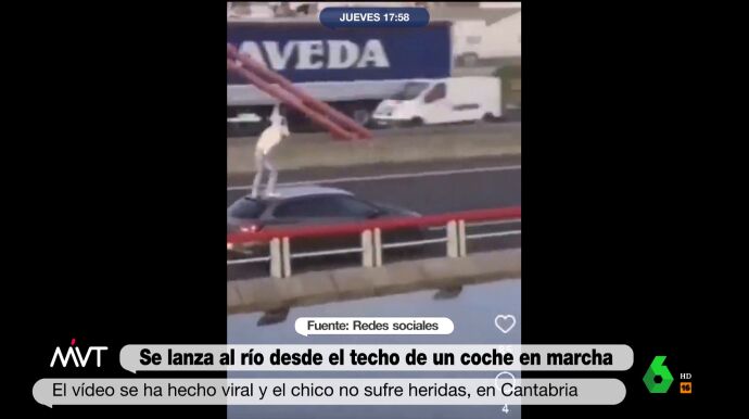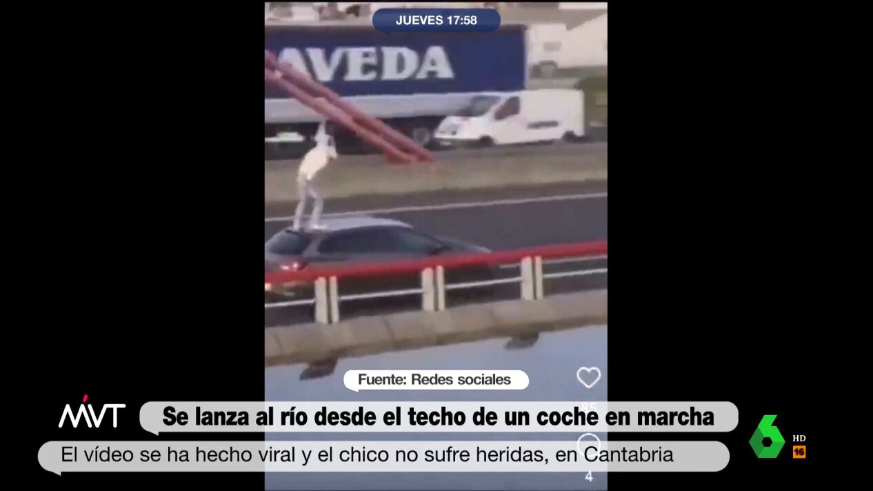 Se está haciendo viral el video de un joven que se tira a la ría de Treto, en Cantabria, desde el techo de un coche en marcha mientras pasaba por un puente. La Guardia Civil tendría identificados a todos los participantes de este episodio que, se sospecha, no habría tenido lugar en 2023, pero que se habría viralizado ahora en las redes sociales.