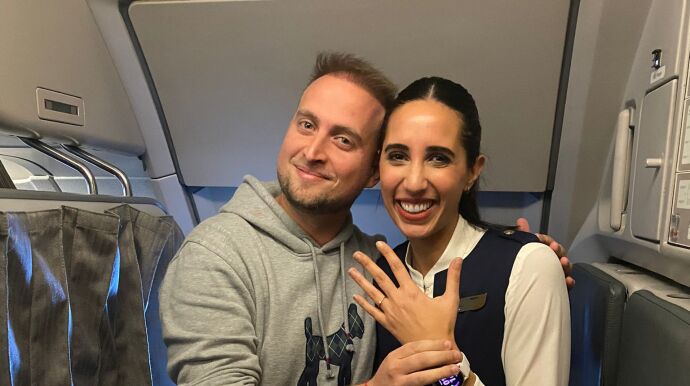 Tal y como confiesa Sergio, todo estaba preparado desde hace semanas, estaba compinchado con el comandante y con los compañeros azafatos/as, ya que Sergio quería aprovechar una pernocta para pedirle matrimonio a su novia Alba, con la que lleva saliendo desde hace tres años. Y esa pernocta coincidía con un vuelo a Roma, el 14 de febrero. Y todo salió rodado.