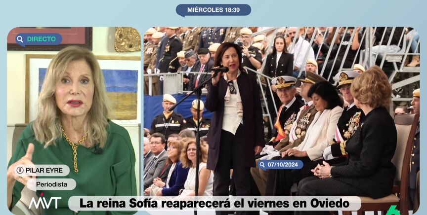 Pilar también apunta que a la reina Sofía "le molestó que la trataran de usted", un tratamiento que considera "el peor que puede haber", así como que "se pusiera el foco en los problemas que ha tenido". Un enfado que, comenta, "lo hizo saber y Felipe VI se lo comentó a la ministra de Defensa".