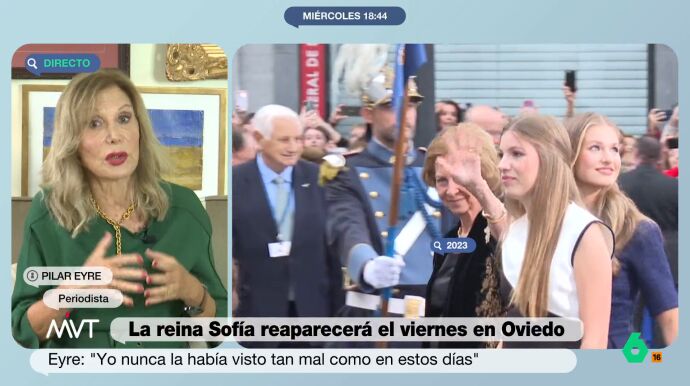 Pilar Eyre analiza en Más Vale Tarde cómo es la relación entre la reina Sofía y la familia real. En este sentido, señala que "prácticamente no ve" a la princesa Leonor y la infanta Sofía y que la familia real "de unida no tiene nada".