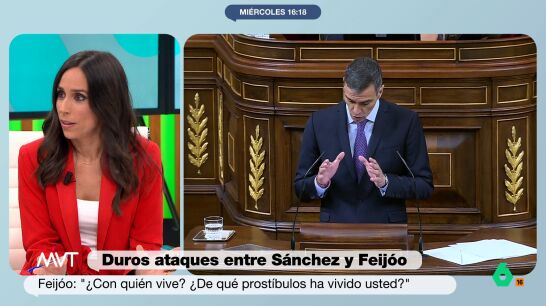 La periodista Pilar Velasco expone que es habitual que se nombre al narcotraficante en las sesiones de control. "Muchos decimos que igual es el comodín también", añade la periodista. Velasco considera que la respuesta de Feijóo a las palabras de Sánchez, "ha sido como cuando te insultan y clavas una navaja". "Creo que no ha sido un discurso duro, ha sido un discurso sucio y traspasa una frontera desconocida hasta ahora", añade la periodista.