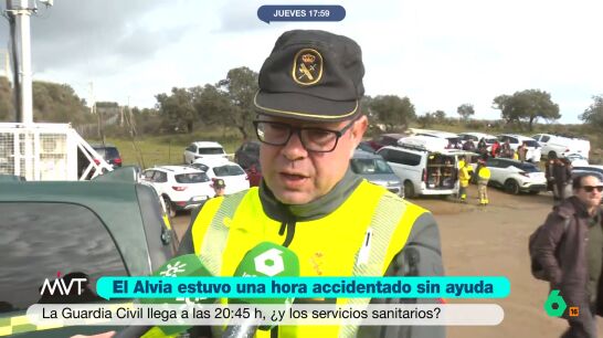Según la cronología que él mismo reconstruye y se analiza en 'Más Vale Tarde', sobre las 20:45 horas se encontró con estos vagones y una escena aún más desoladora ya que no había ningún sanitario en el lugar, pese a que había pasado cerca de una hora desde la primera llamada del Alvia al 112. No obstante, desde Interior indica que fue a las 20:15 cuando la Guardia Civil llegó a este tren.