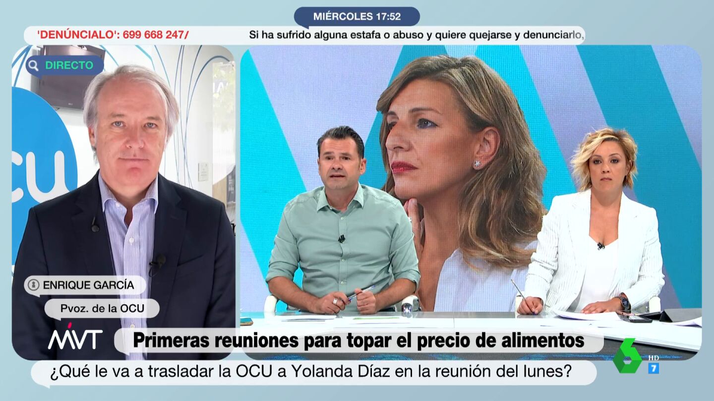 Tras la propuesta de Yolanda Díaz de limitar el precio de ciertos alimentos básicos, el portavoz de la OCU Enrique García afirma que desde la organización no pueden hacer todavía una valoración de la medida, porque aunque la intención es bajar los precios de determinados productos, "de ahí a cómo se haga hay enormes diferencias".