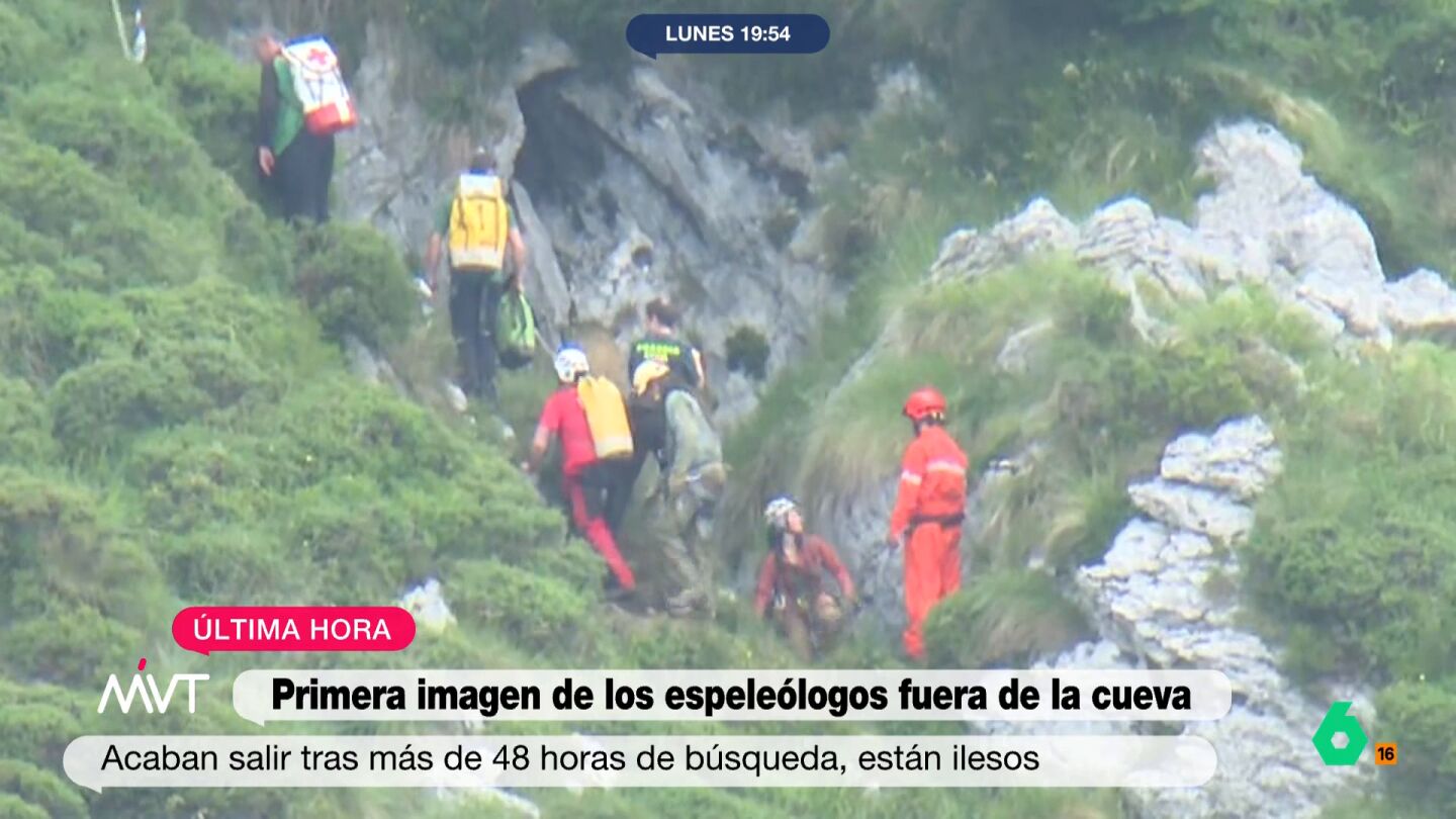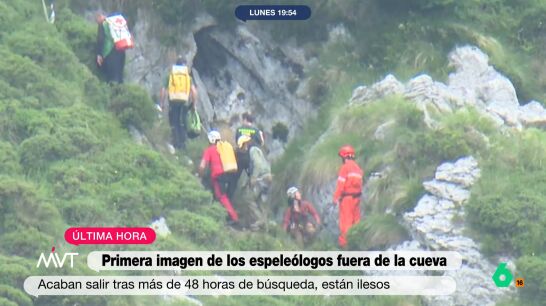 Las primeras imágenes de los espeleólogos rescatados al salir de una cueva en Cantabria