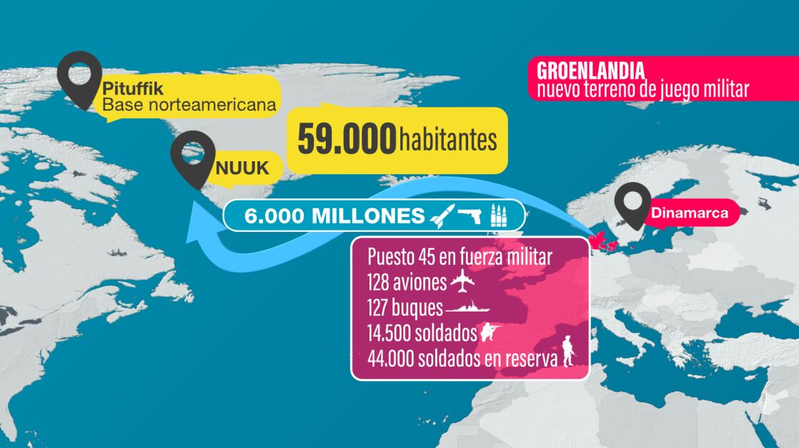 Asimismo, Garat ha señalado otra de las cuestiones fundamentales de este conflicto: "Todas las Fuerzas Armadas de Dinamarca tienen su base en Dinamarca, no tienen cuarteles permanentes en la isla y lo que tienen para controlar la isla es el envío de barcos, aviones y patrullas periódicamente". Precisamente por esto, Trump ha remarcado en distintas ocasiones que la isla no está debidamente protegida frente a China y Rusia. Sin embargo, los daneses invirtieron hace un año 6000 millones de euros en la protección de Groenlandia y este miércoles han comenzado a llegar los primeros refuerzos militares.