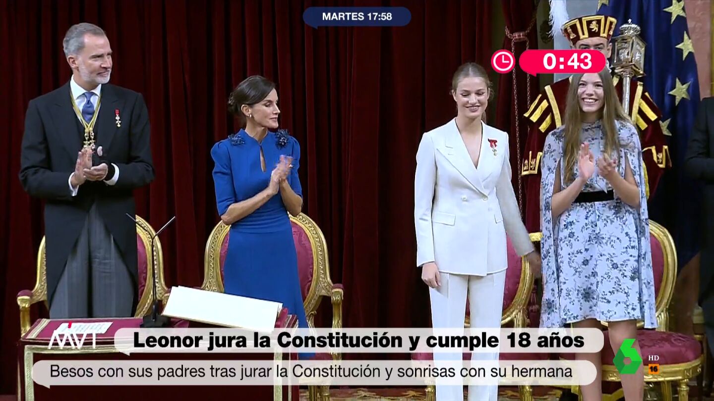 La experta en protocolo Gloria Campos analiza el gesto serio de la reina Letizia durante la jura de la Constitución de la princesa Leonor: "Un error", a su juicio, que achaca a "un problema mundano, de actitud y probablemente doméstico".