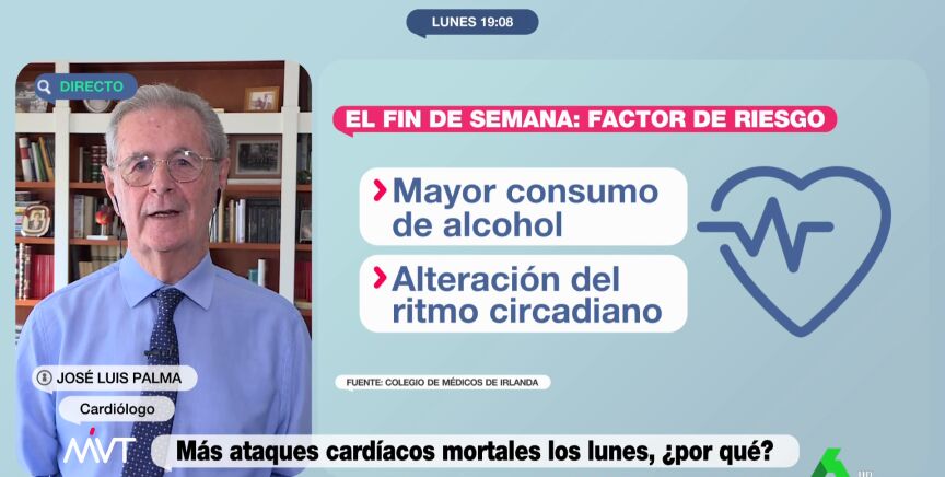 El Colegio de Médicos de Irlanda ha publicado un estudio que demuestra que los lunes se registran más ataques cardíacos mortales. El cardiólogo José Luis Palma explica en Más Vale Tarde por qué sucede esto.