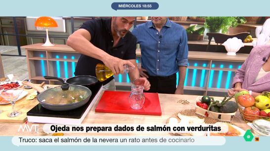 Ante las dudas de Iñaki López sobre la sensación de saciedad que aportan las verduras, Ojeda da varias claves para que nos pueden ayudar, usando una jarra de agua y aceite para explicar cómo funciona nuestro estómago.