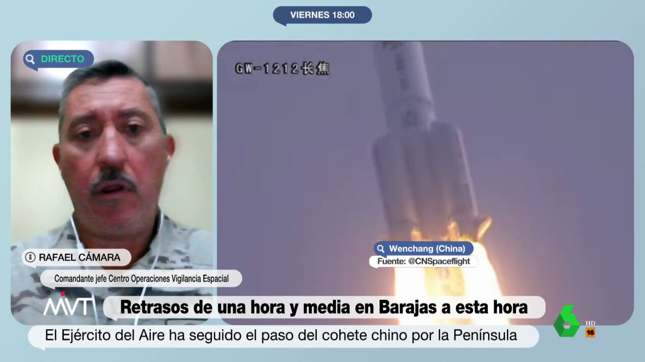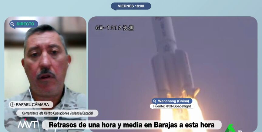 Rafael Cámara, comandante jefe del Centro de Operaciones y Vigilancia Espacial, ha explicado en Más Vale Tarde el riesgo real de que un fragmento de basura espacial, como los restos del cohete chino que este viernes ha alterado el tráfico aéreo español, impacte sobre vuelos comerciales o caiga en alguna ciudad.