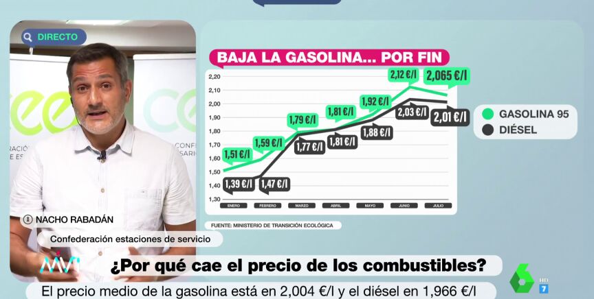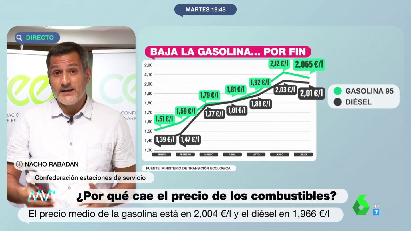 Nacho Rabadán, portavoz de la Confederación de estaciones de servicio, ha explicado en Más Vale Tarde a qué se debe la bajada de los precios de la gasolina que se está experimentando en los últimos días.