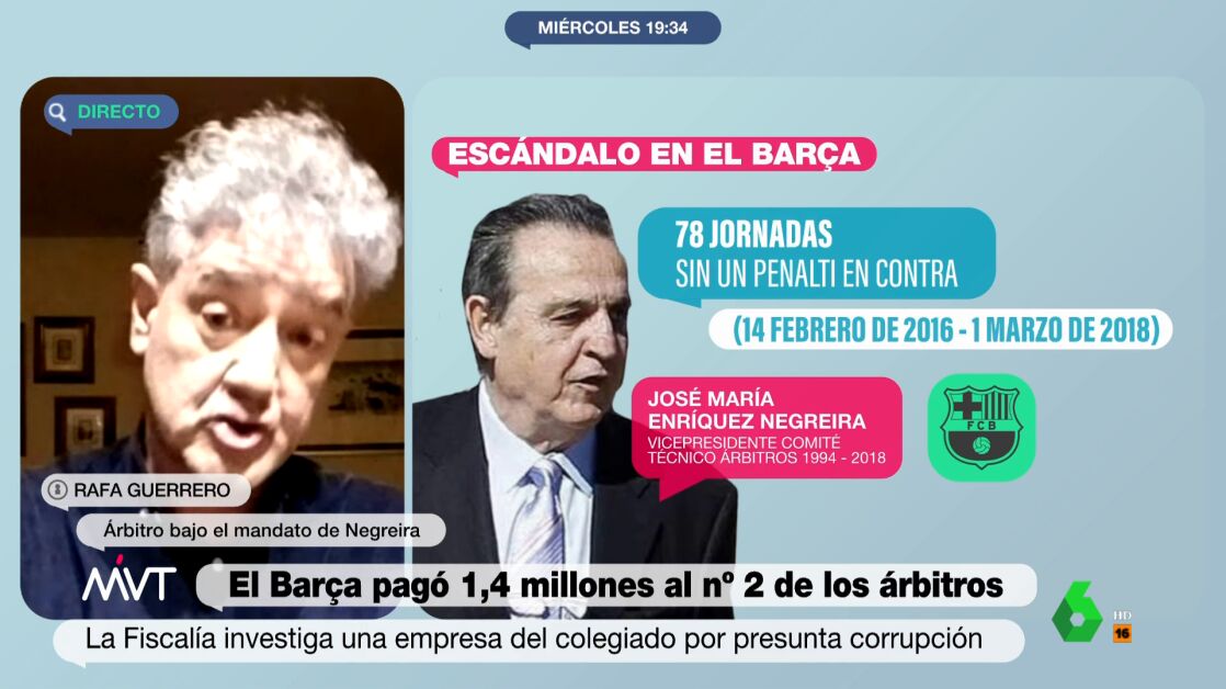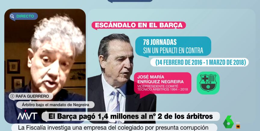 En Más Vale Tarde, hablamos con el exlinier Rafa Guerrero, que arbitró bajo el mandato de Enríquez Negreira, que cree que "no tiene mucho sentido" que alguien con su cargo pudiese hacer algo así.