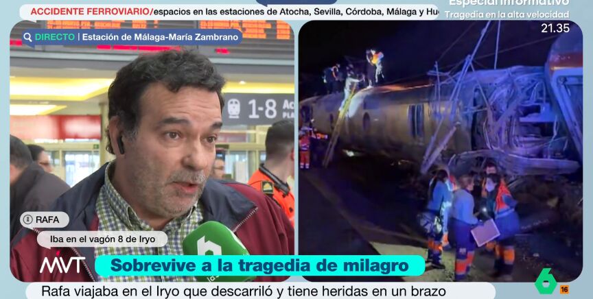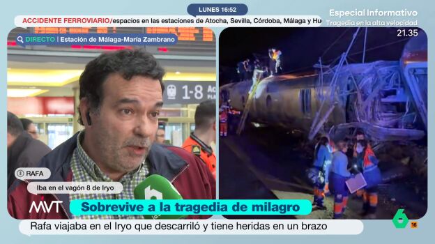 Rafa ha vuelto a nacer. Así se siente después de haber sobrevivido al accidente ferroviario de Adamuz y haber quedado prácticamente 'de una pieza'. Era pasajero del tren Iryo que iba de Málaga a Madrid y que descarriló a la altura de ese pueblo de Córdoba.