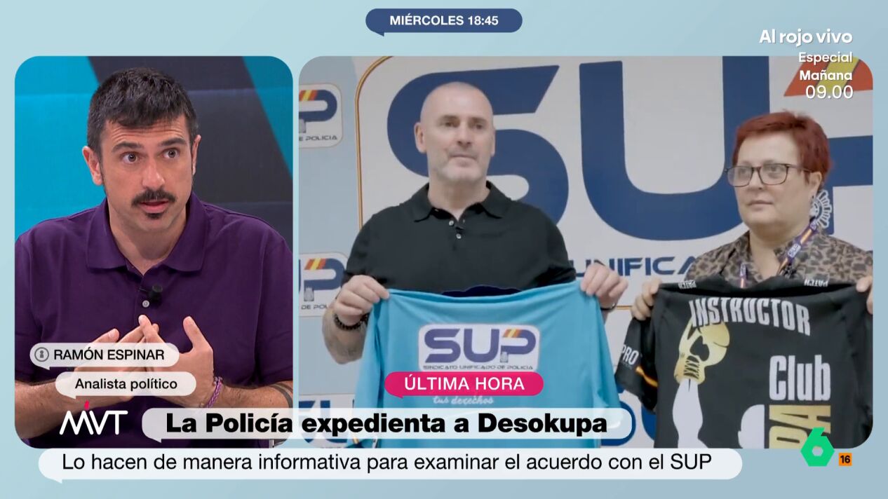El exsenador y exdirigente de Podemos Ramón Espinar ha sido crítico con el acuerdo alcanzado por el Sindicato Unificado de la Policía Nacional (SUP) y la empresa Desokupa, especializada en desalojos y de tendencia ultraderechista, para formar a más de 30.000 agentes. Este acuerdo ha sido expedientado por la Dirección General de la Policía Nacional.