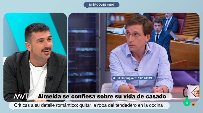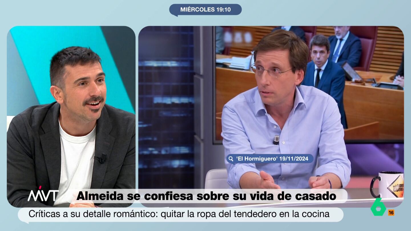 Ramón Espinar y el resto de Más Vale Tarde debaten sobre el polémico gesto "romántico" de Almeida al recoger un tendedero. En este vídeo, Espinar habla de su "momentazo de Romeo y Julieta" con su pareja, un lavaplatos y una lavadora.