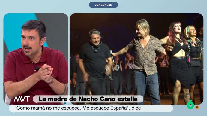 Ramón Espinar, por su parte, expone que "partiendo de la premisa de que Nacho Cano se ha montado la peli de 'Braveheart' y se ha creído que de verdad le persiguen", le ha dado la "enhorabuena", pero no a él, sino a su madre: "Yo quiero una madre así que, por cierto, la tengo". "Siempre hay que estar con tus hijos a tope", añade el periodista.