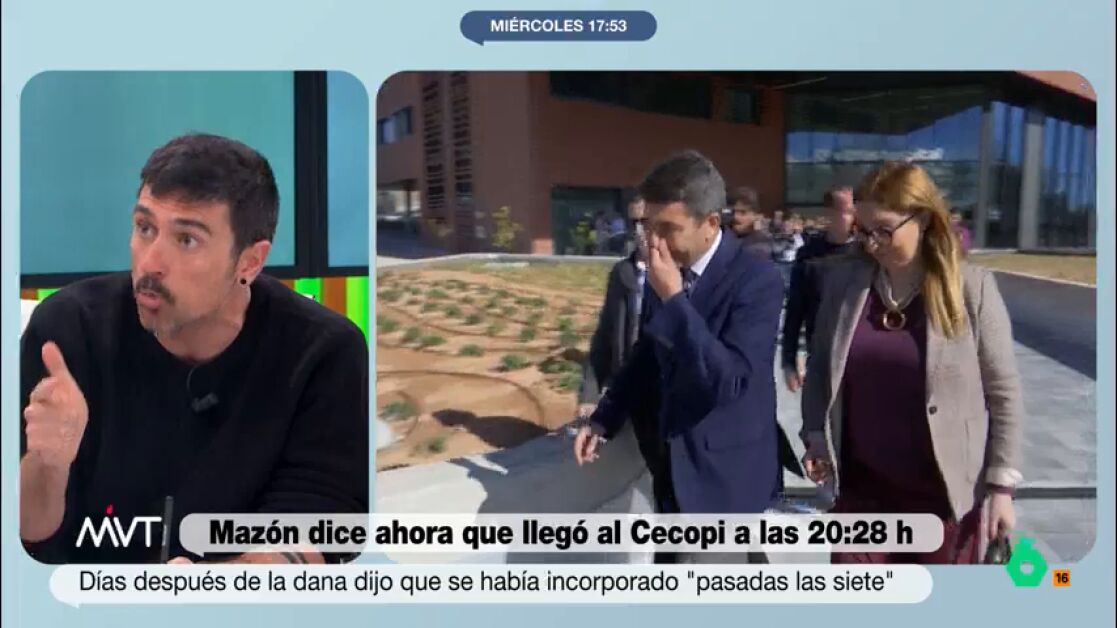 Más Vale Tarde debate en este vídeo sobre la delicada situación de Carlos Mazón tras conocerse que llegó al CECOPI a las 20:28 horas, mucho más tarde de lo que había dicho en un principio.