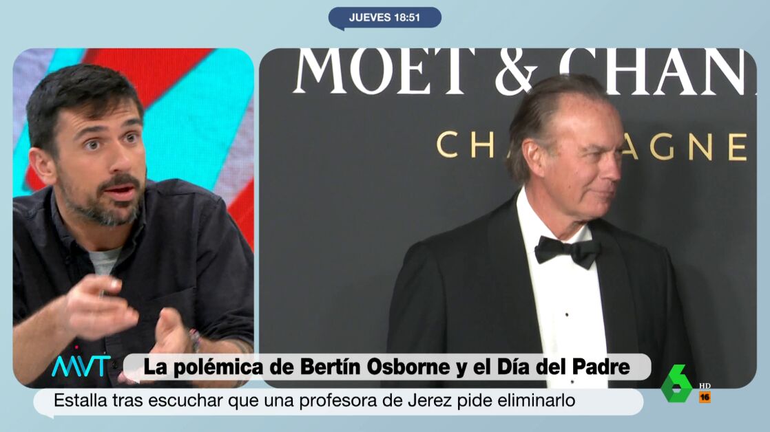 Unas palabras a las que Ramón Espinar ha respondido en Más Vale Tarde. "Supongo que a gente como Bertín Osborne le parece que somos hombres blandengues, planchabragas y no sé qué más historias", ha dicho, en alusión a quienes entienden que las antiguas Asociaciones de Padres hayan pasado a conocerse como Asociaciones de Familias para reflejar "realidades muy diversas".