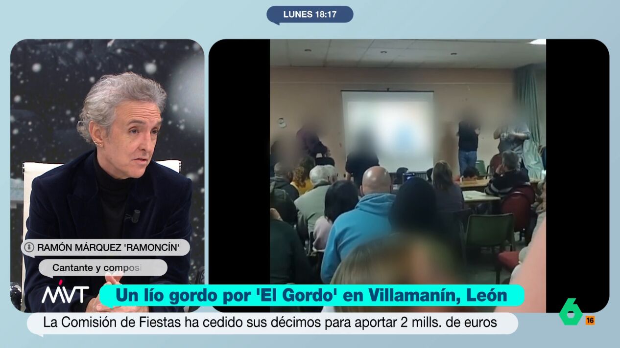 Ramoncín recomienda a los vecinos de Villamanín ceder parte del décimo, porque si no, "no va a cobrar nadie nada"