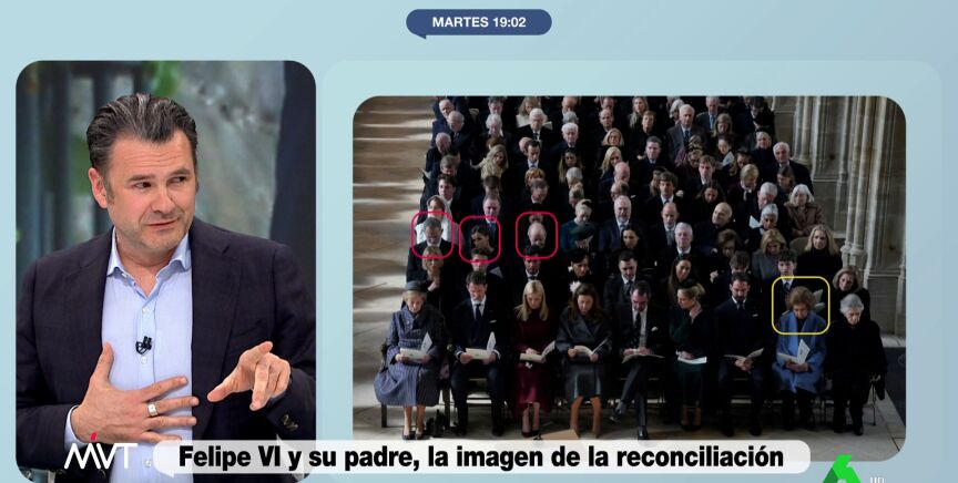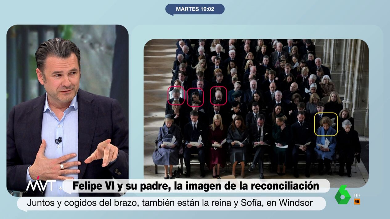 Más Vale Tarde analiza las imágenes en las que se ve a Felipe VI y la reina Letizia sentados junto al rey Juan Carlos durante la ceremonia en memoria de Constantino de Grecia en Windsor. La reacción de Iñaki López, en este vídeo.