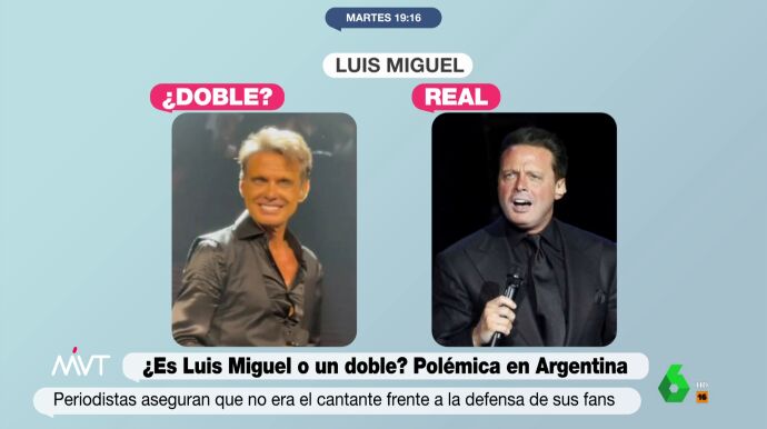 La polémica está servida. Diversos periodistas argentinos aseguran que el cantante Luis Miguel tiene un doble. El programa Más Vale Tarde analiza las últimas apariciones del cantante, en plena gira de conciertos.
