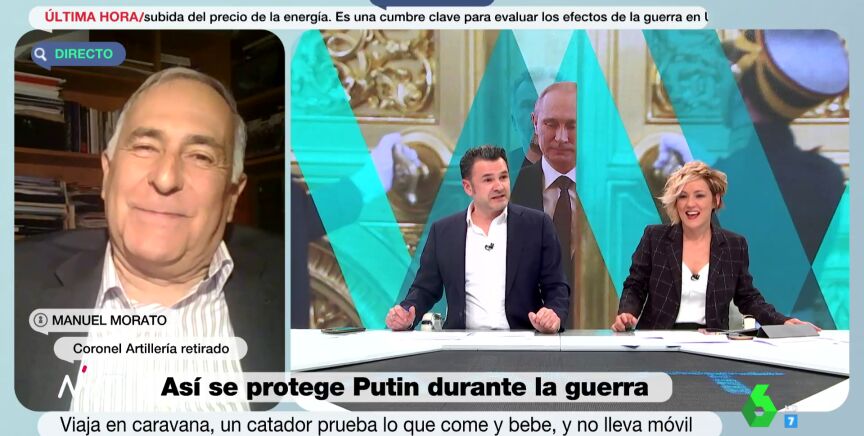 Iñaki López y Cristina Pardo han entrevistado al coronel Manuel Morato en Más Vale Tarde, donde han abordado las precauciones que toma Vladímir Putin para protegerse, incluida la posibilidad de que tenga un catador para probar su comida y bebida.