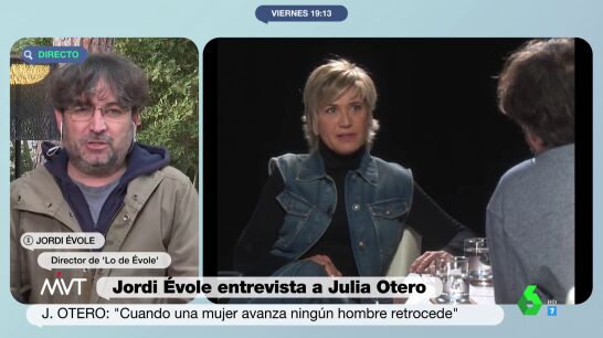 Julia Otero habla de feminismo y otros temas con Jordi Évole. La periodista, pionera en esta lucha, defiende que "cuando una mujer avanza, ningún hombre retrocede". Évole, por su parte, cree que queda "muchísimo trecho por recorrer" todavía.
