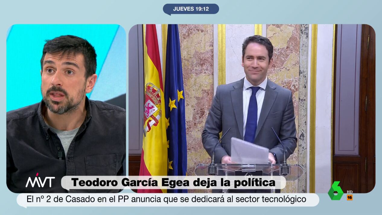 Espinar reconoce que le ha dado pena ver a Teodoro García Egea "salir solo" tras abandonar su escaño y reflexiona en MVT sobre su propia experiencia: "Es una foto que a los que hemos salido de la política nos suena".
